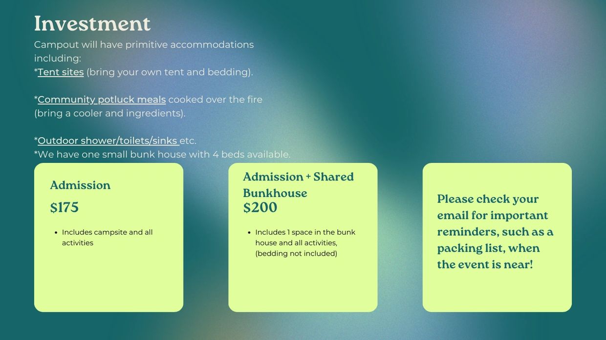 This potent weekend is very intentionally curated with the perfect balance of Self-Care moments, free time, sacred and meaningful ceremony, and abundant opportunities for rest and immersion in nature.