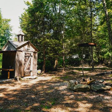 Our main living area for the weekend, simply and lovingly referred to as "Camp", is where we set up tents, prepare our meals, socialize around the fire, and soak in the wood fired hot tub. Resembling a natural pond, our hot tub is a favorite feature at camp. Bring a bathing suit if you wish!