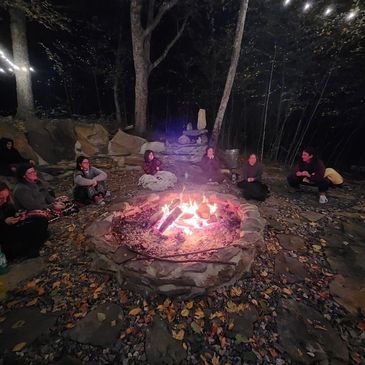 The Sacred Fire site is located just uphill from camp. Following the lighted path, we gather around the stone fire to hold all of our sacred ceremonies. Holding this space as the sacred container allows us to step into a portal of intention. Surrounded by nature, with a fire at the heart of our circle sets the tone for all the deep diving we do together.